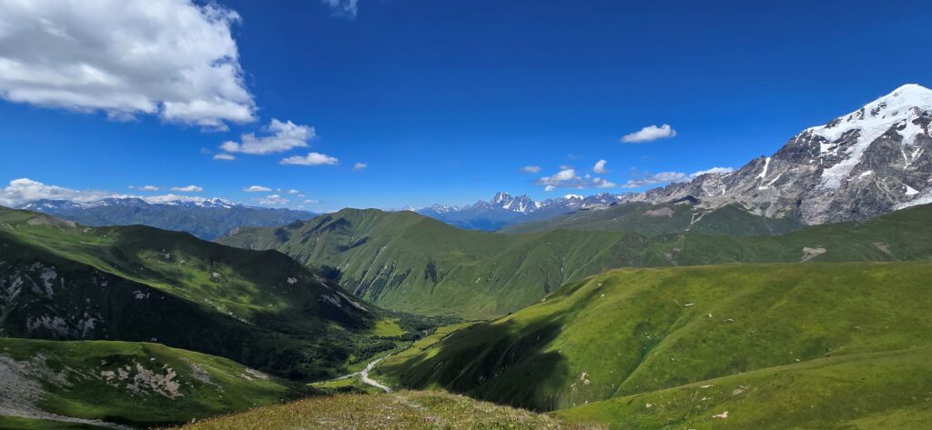 After Batumi, we headed to the beautiful town of Mestia in the Caucasus Mountains. It was the jumping off point for a five-day trek through Svaneti. We took a marshrutka (minibus in Georgia) and learned about how wild the drivers really are! I thought we were full as every seat was occupied, but it turns out the driver keeps folding stools to place in the aisle and pick up more passengers.