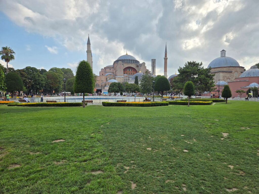 The border ended up being really easy. We got off the bus and lined up to get stamped out of Bulgaria. Then, we got back on the bus to drive through no man’s land to the Turkish border. Here, I handed my passport through a small window, looked into a camera and got stamped into Türkiye. The biggest hitch was waiting awhile to scan our luggage because the person working that area was on a break or something.