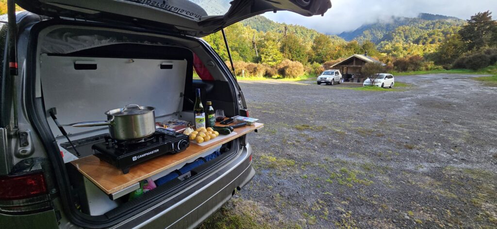 Once you decide on whether you should go self-contained or not, the next thing you need to consider is size. New Zealand Campervans can range anywhere from a converted standard minivan on the smaller side to a full RV on the larger side. Ours was a standard minivan fitted with a bed, sink and portable toilet.